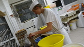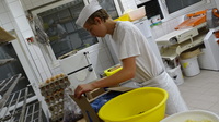 In der Backstube wird’s lebhafter. Mittlerweile ist es drei Uhr. Lehrling Kay Zechel stößt dazu. Der 17-Jährige kommt bald ins zweite Lehrjahr. Warum er sich gerade für diesen Beruf entschieden hat? „Weil es Spaß macht und ich mich kreativ austoben kann.“ Und die Arbeitszeiten? „Die sind gut. Dann hat man wenigstens was vom Tag, wenn man in der Nacht arbeitet.“