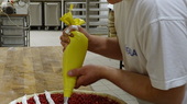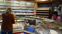 Um halb vier greift Sebastian Groß zu einer Papiertüte und füllt sie mit frischen Backwaren. „Draußen ist Willi, der Taxifahrer. Er holt sich jeden Morgen als Erster seine Labla.“ Das Kleingeld klimpert leise. Die Öfen wummern. Der Bäckermeister kümmert sich um Süßes. Er verziert Schwarzbeer- und Johannisbeerkuchen mit Baiser.