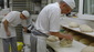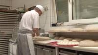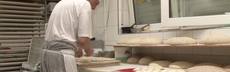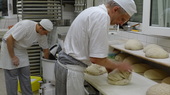Je früher der Morgen, desto emsiger werkeln die zwei Bäckermeister und der Lehrling. Die Brote sind dran. Der Teig wird geschlagen, gewuchtet, geformt. Das Bizepstraining des Bäckers.