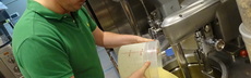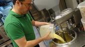 Rast Nummer zwei steht an. „Man braucht ja schließlich Zeit, um zwischendurch mal eins zu trinken.“ Noch einmal kurz aufheizen, dann geht es ans Abmaischen. Sven befördert die Maische aus der Sudpfanne in den Läuterbottich, wo er die Malzreste von der Flüssigkeit trennt. Diesen Vorgang nennt man Läutern. „Wir Brauer haben eben für alles eigene Namen.“ So auch für das Produkt, das nach dem Läutern übrigbleibt: Die Würze, die wie warmes Malzbier schmeckt. Kein Wunder: Der Hopfen fehlt noch. Der Brauer gibt ihn hinzu, während er die Würze erhitzt. Dabei bekommt das Bier seine bittere Note.