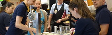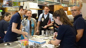 Nicht nur lauter wird es, auch immer mehr Gerüche vermischen sich in der mehlbenetzten Luft. Der klassische Brötchenduft, Fruchtnoten, Kirsch und Zitrone. Aber auch Schinken, Oregano und Zwiebeln kommen zum Einsatz.