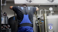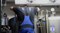 Teilmaische für Dummies: Der Brauer pumpt einen Teil der Mischung in den anderen Behälter, den sogenannten Läuterbottich. Ein Teil rastet, den in der Sudpfanne verbliebenen Teil erhitzt Sven noch weiter. Nachdem er die beiden wieder zusammengeführt hat, beträgt die Temperatur des resultierenden Suds 72 Grad – „zumindest, wenn wir alles richtig gemacht haben.“ Die Teilmaische dient dazu, Stärkemoleküle zu spalten. Das macht nicht jede Brauerei: „Das gehört bei uns zur Philosophie des Chefs“, erklärt Sven. „Manche glauben, dass sich das auf den Geschmack auswirkt.“